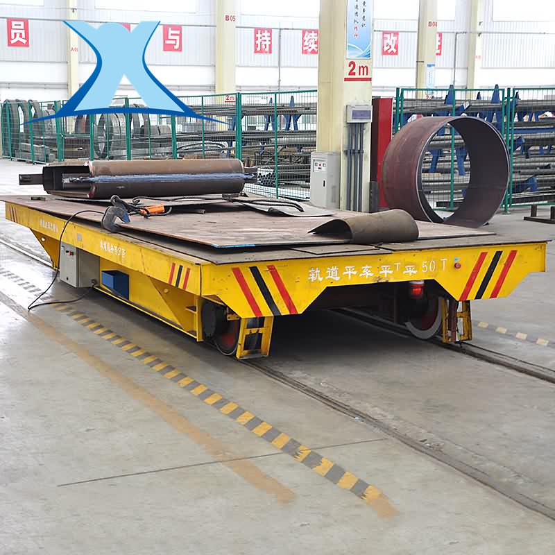 BHX系列電動平車是 滑觸線供電式電動平車。其是在軌道側面開設地溝,地溝內安 裝 滑觸線,地溝上鋪設有單面用鉸鏈固定于地上的蓋板。電動平車運行時通過安裝在平車上的地溝 翻板裝置,將蓋板掀起,翻板裝置內有同 滑觸線集電器聯接的電纜。電動平車通過后蓋板自動放回 地面。能保證無軌車輛順利通過。地溝翻板滑觸線型電動平車不受運行距離的束縛。